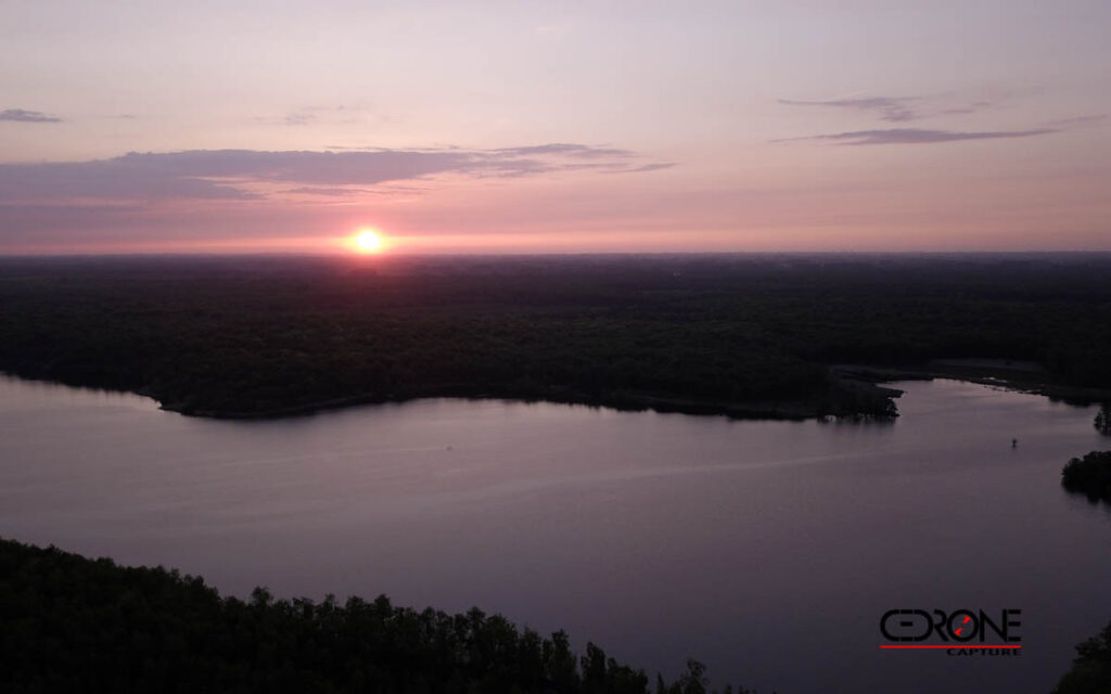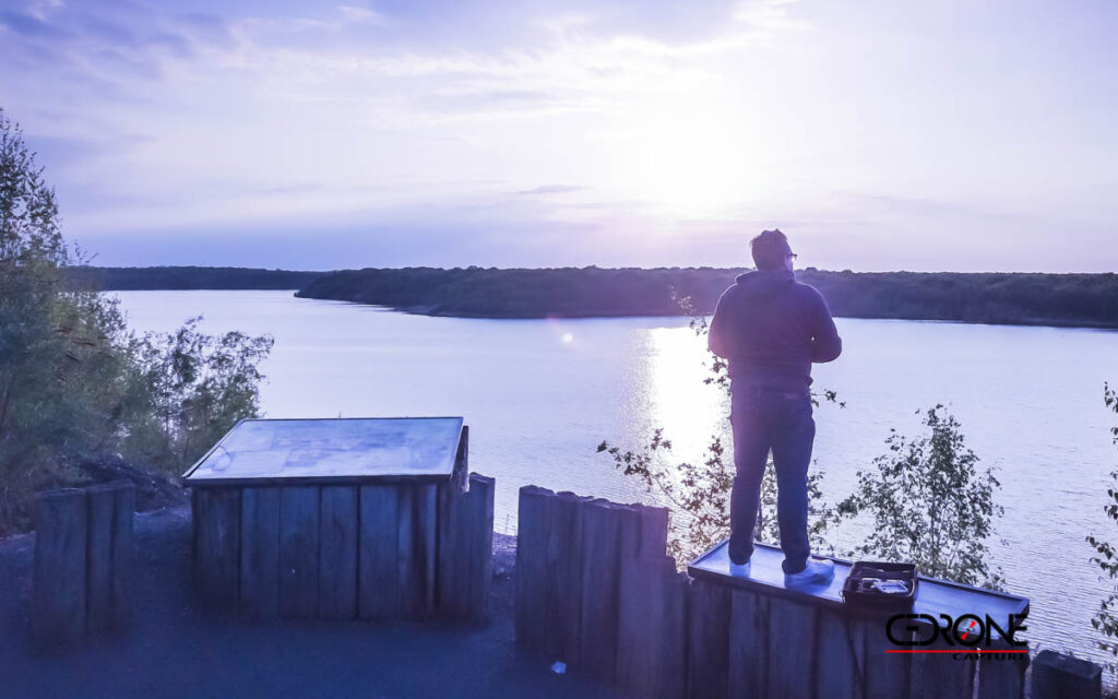 Vol d un soir pour le couché de soleil sur la marre à Goria