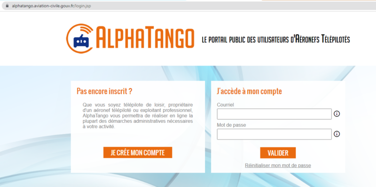 Alpha tango est un portail officiel permetant au télépilote de drone de gerer leur activité :